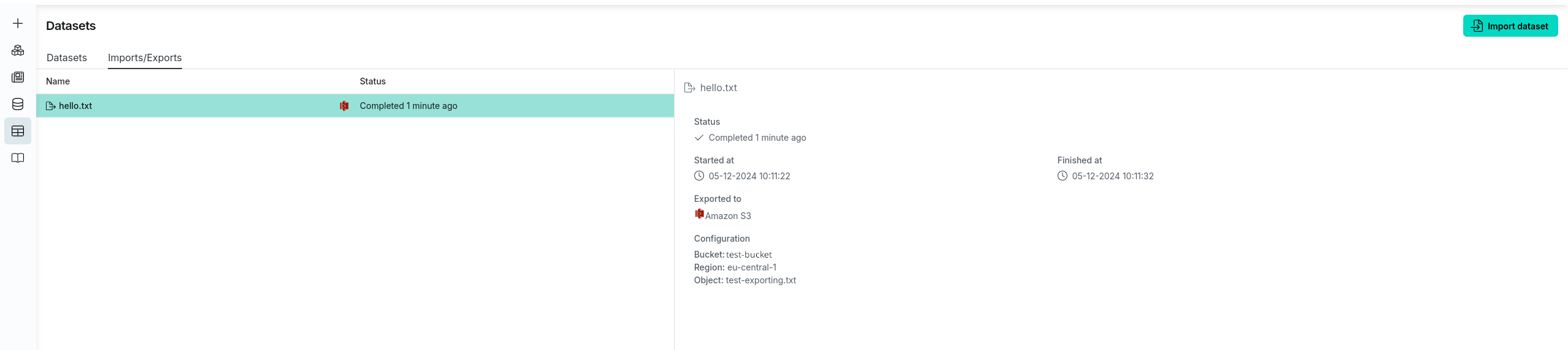 3. After clicking the Export button navigate to the Imports/Exports tab on the Datasets page to track the status of the export.