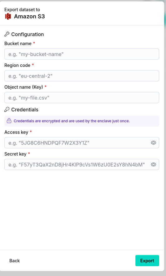 The Amazon S3 connector provides a convenient way of exporting data directly from the Decentriq platform to an Amazon S3 bucket.