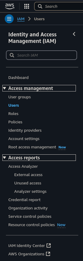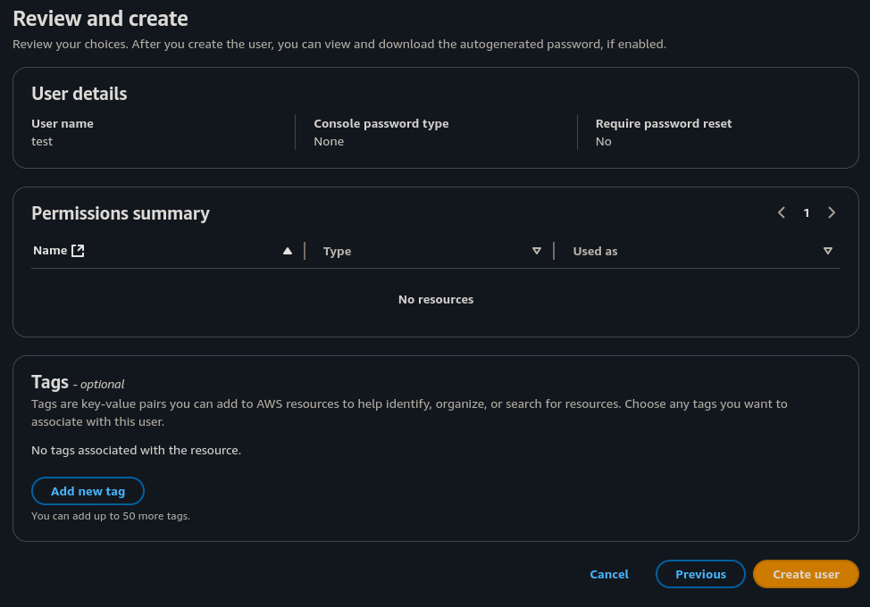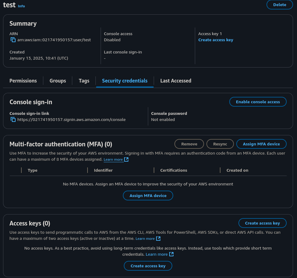 6. Next click on the newly created user and navigate to the Security credentials tab