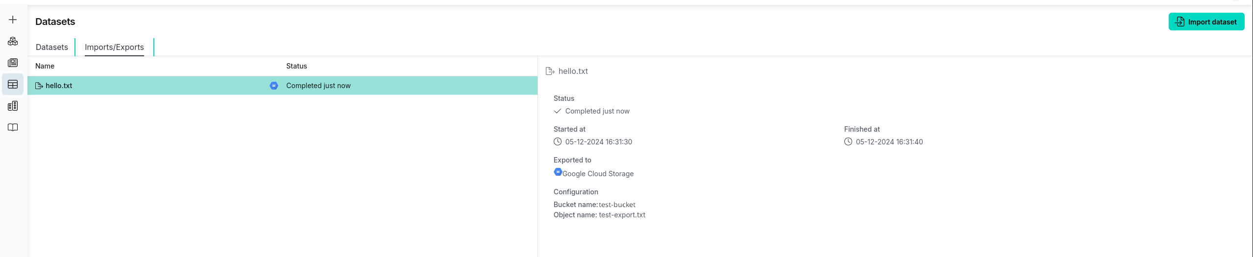 3. After clicking the Export button navigate to the Imports/Exports tab on the Datasets page to track the status of the export.