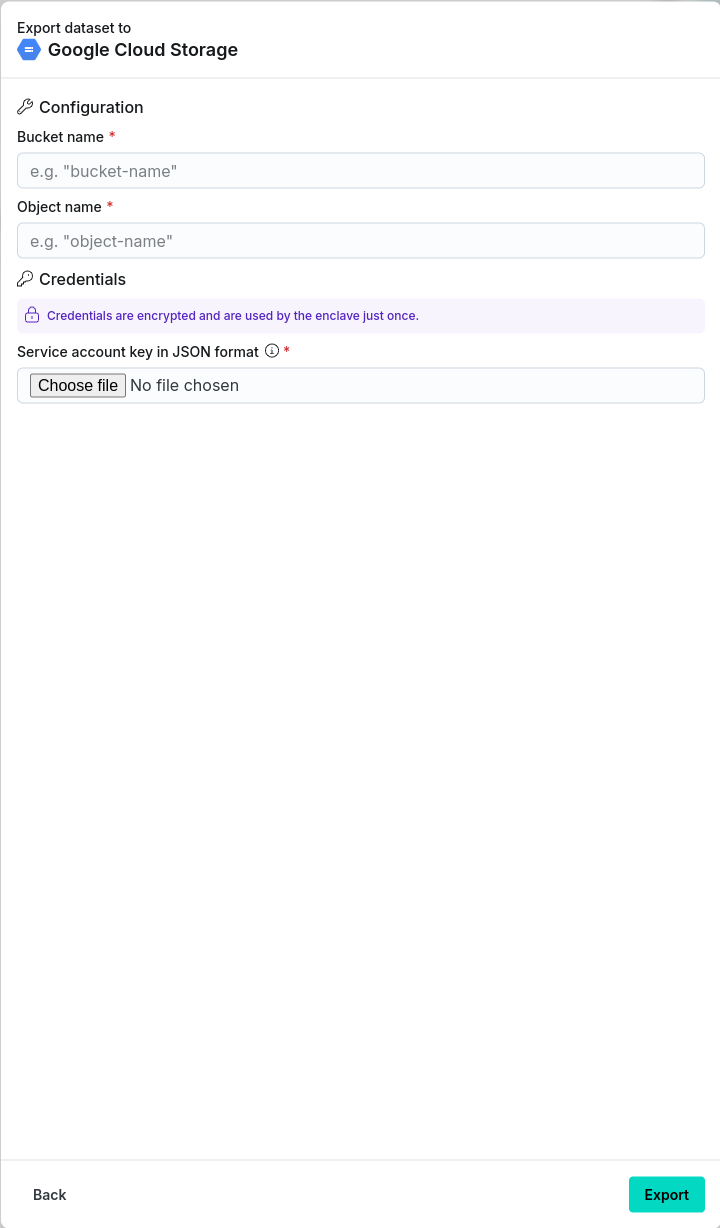 The Google Cloud Storage (GCS) connector provides a convenient way of exporting data directly from the Decentriq platform to a GCS bucket.