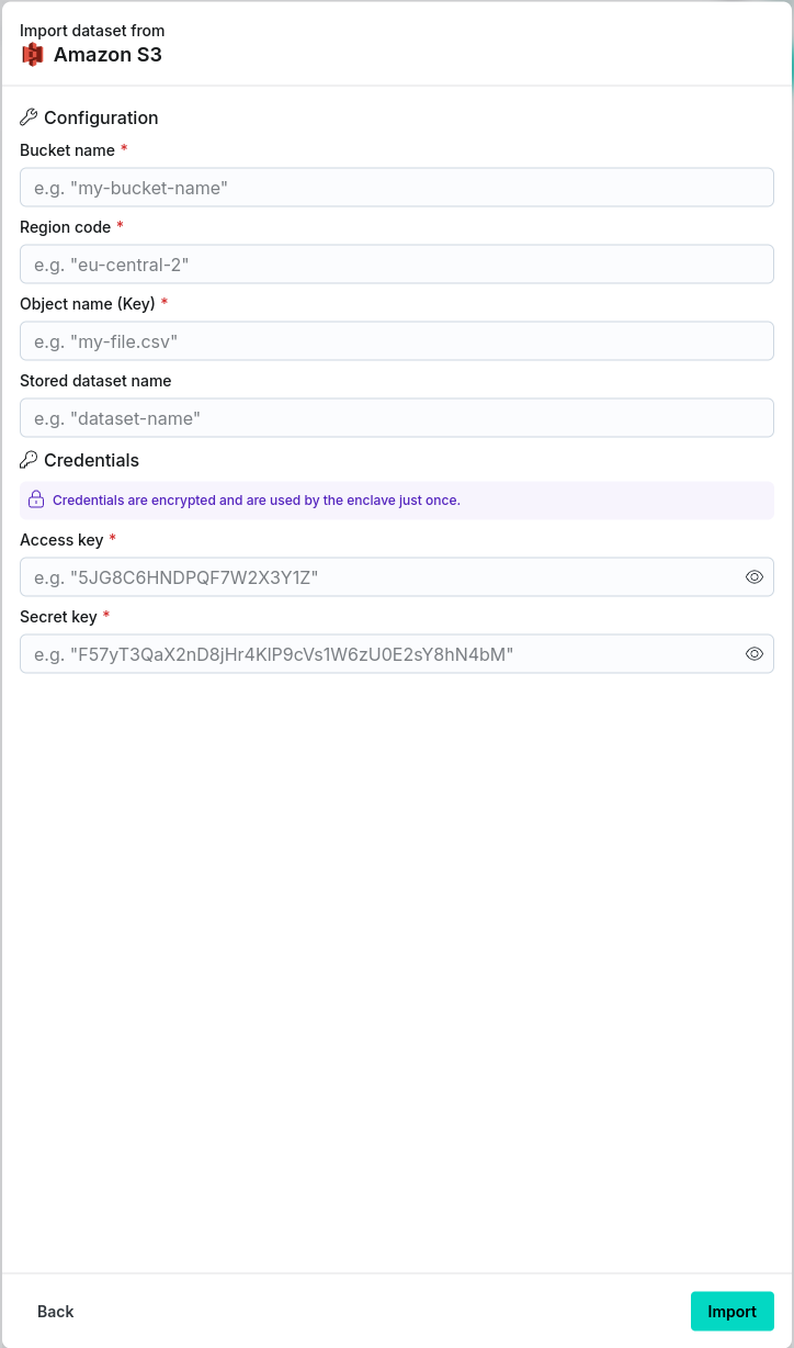 The Amazon S3 connector provides a convenient way of importing data directly from an Amazon S3 bucket into the Decentriq platform.